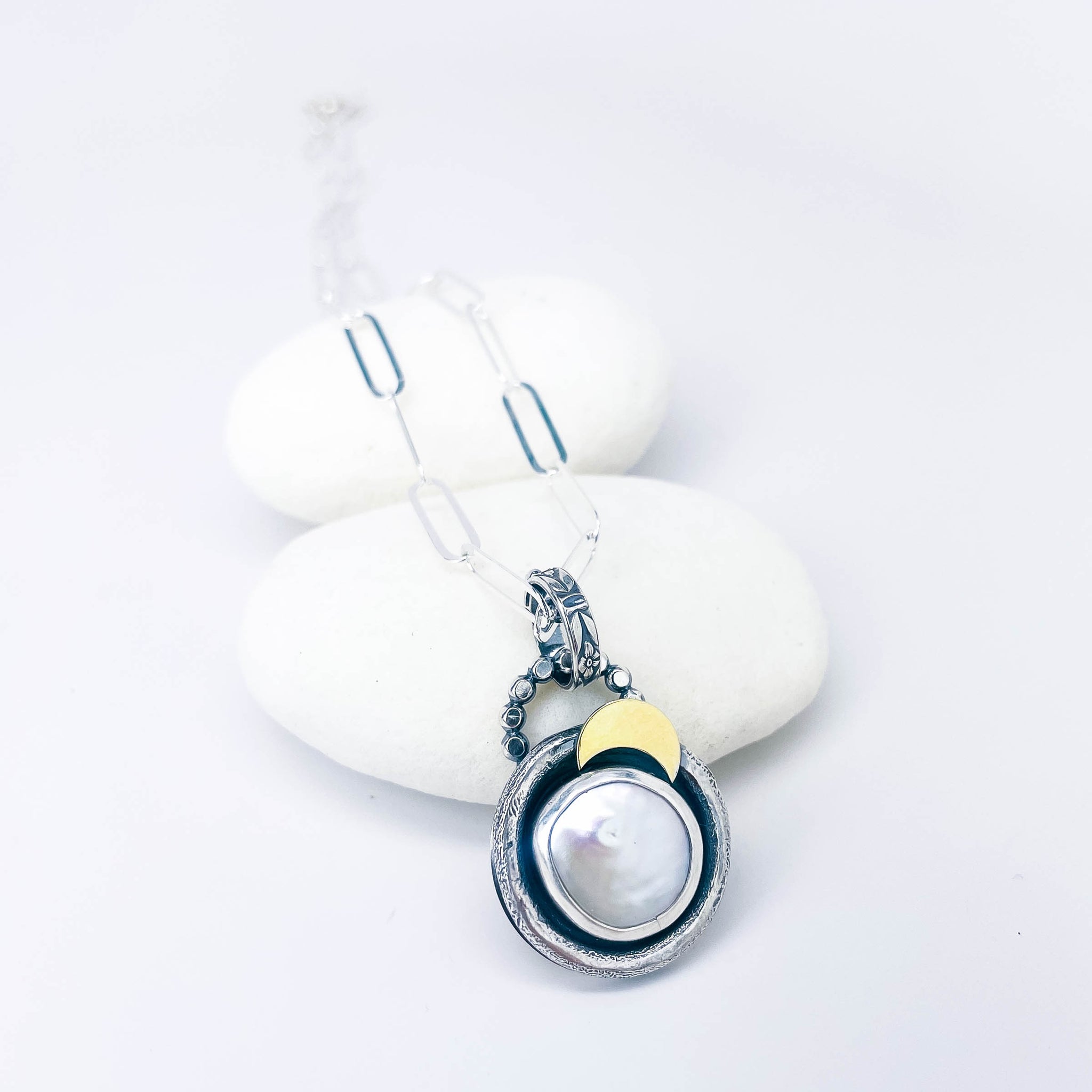 Sterling Silver Pearl Pendant - Serenity Talisman