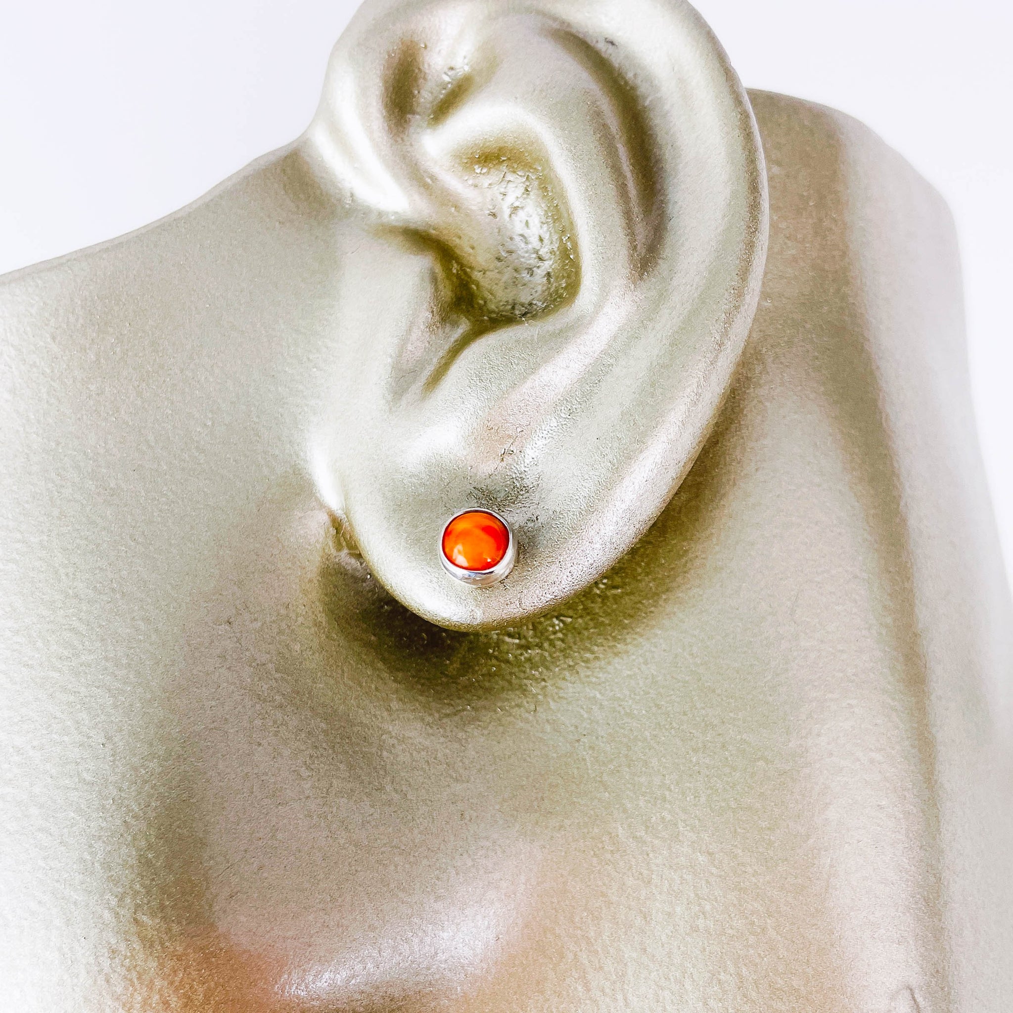 Hand-forged from sterling silver, these delicate stud earrings cradle hand-selected stones—whether radiant spiny oyster shell or warm amber—in a design that whispers of sanctuary and connection. Each pair is a mini talisman for the soul, small yet luminous, grounding the wearer with subtle energy designed to catch light and attention through gentle movement.