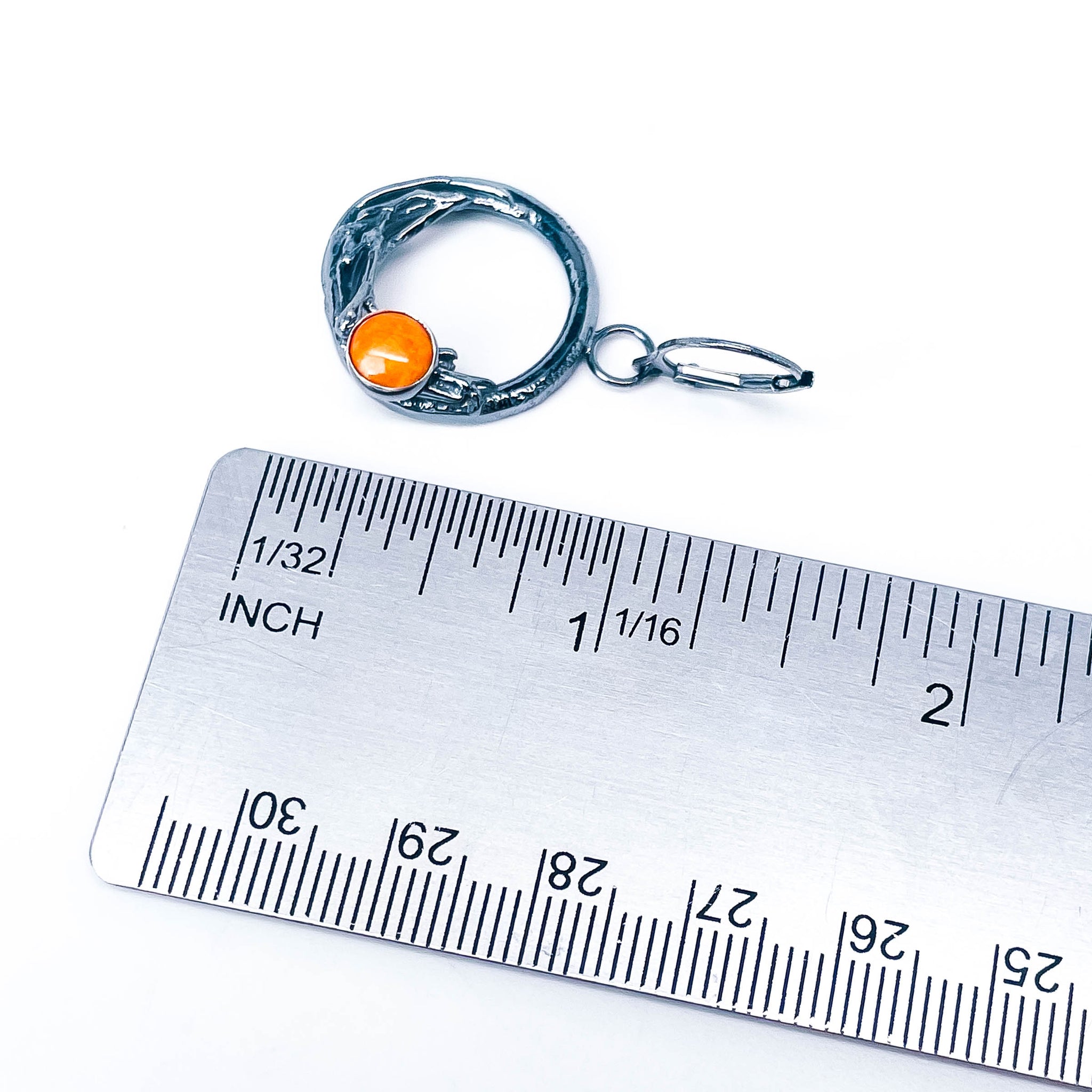 These earrings cradle the warmth of the desert sunset within their sterling silver embrace. The spiny oyster shell, with its rich orange hues and natural striations, evokes the fleeting beauty of twilight skies. Each piece is meticulously handcrafted, capturing the essence of nature's artistry.