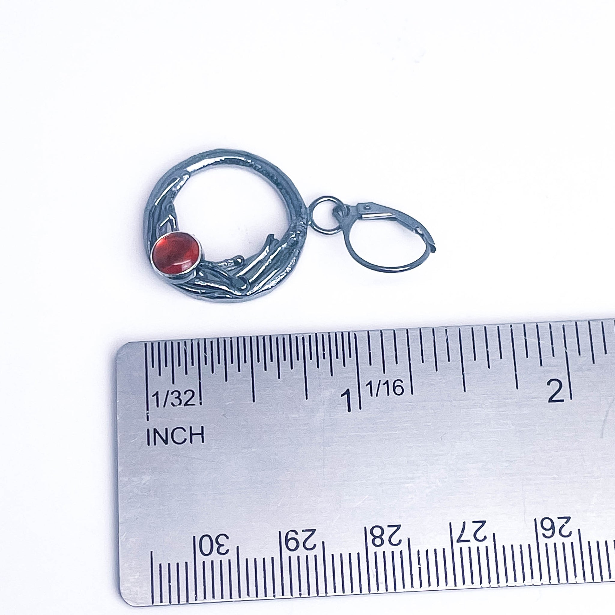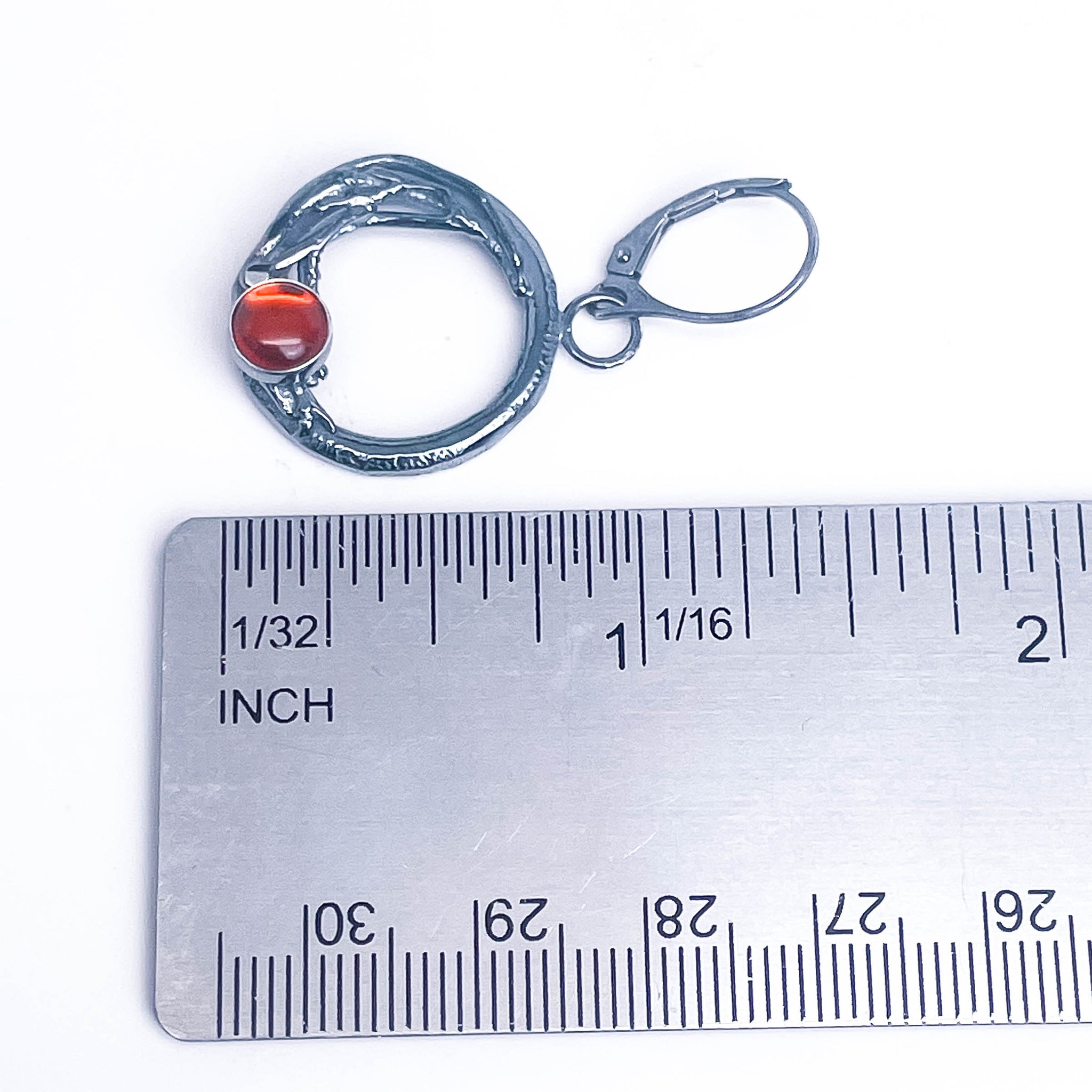 Earring particulars: Handcrafted from gunmetal patinaed sterling silver with a nest. Amber set into silver.
